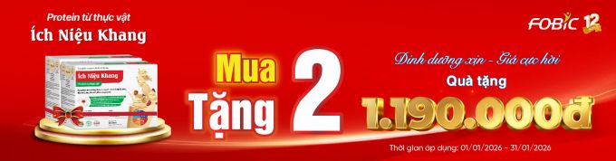 Khi quý khách mua 2 hộp Protein từ thực vật Ích Niệu Khang 14 gói trong thời gian ưu đãi (01/01/2026 đến 31/01/2026), quý khách sẽ được TẶNG 2 hộp Protein từ thực vật Ích Niệu Khang 14 gói (quà tặng trị giá 1.190.000đ).